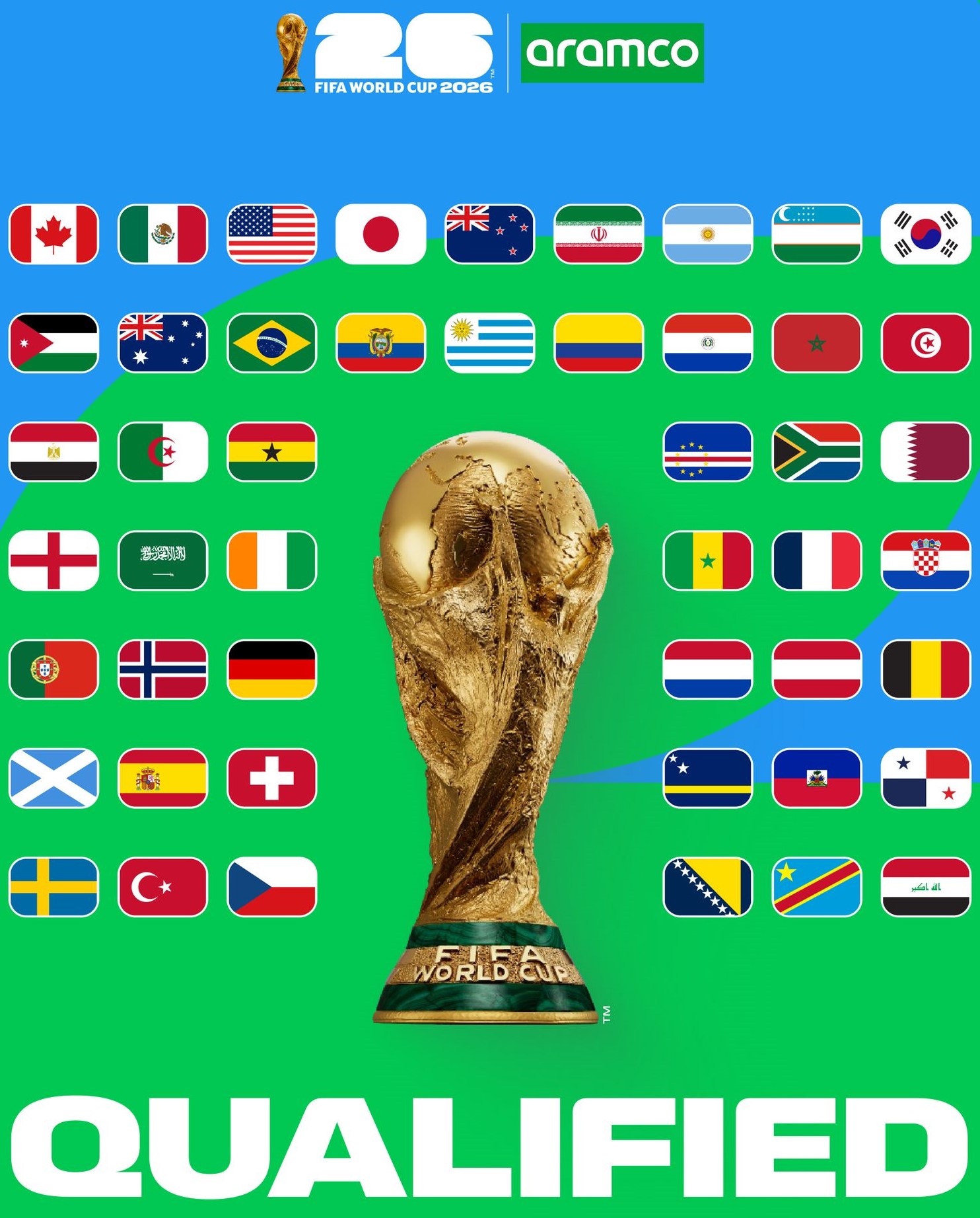 এ ছাড়া ‘আই’ গ্রুপে সাবেক বিশ্বচ্যাম্পিয়ন ফ্রান্স ছাড়াও ইরাকের প্রতিদ্বন্দ্বী নরওয়ে ও সেনেগাল। ১৬ জুন ফক্সবোরোতে ইরাক প্রথম ম্যাচ খেলবে নরওয়ের সঙ্গে। আন্তঃমহাদেশীয় প্লে-অফের ফাইনালে লাতিন আমেরিকার দেশ বলিভিয়াকে ২-১ ব্যবধানে হারায় এশিয়ান দেশটি। আগামী ১১ জুন থেকে ১৯ জুলাই পর্যন্ত যুক্তরাষ্ট্র, মেক্সিকো ও কানাডায় বিশ্বকাপ অনুষ্ঠিত হবে। প্রথমবারের মতো ৪৮ দলের এই আসরে হবে ১০৪টি ম্যাচ।