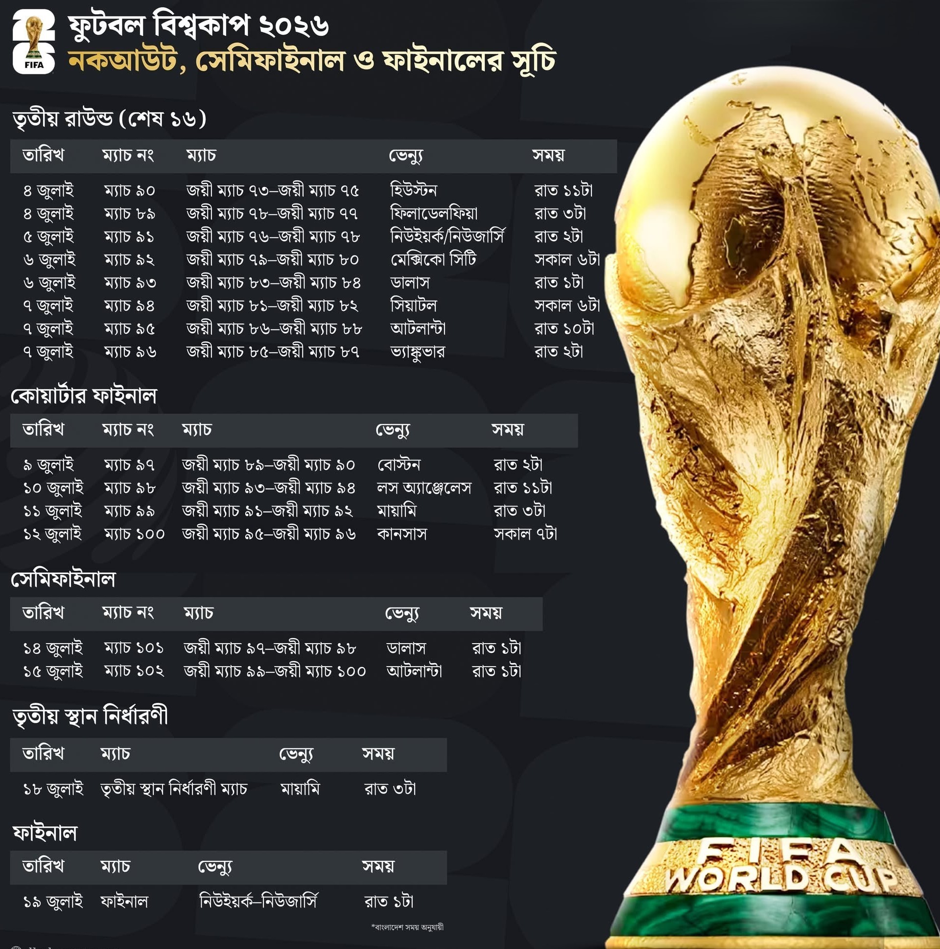 আড়াই মাসেরও কম সময়ের মাঝে যুক্তরাষ্ট্র, মেক্সিকো ও কানাডায় ফিফা ফুটবল বিশ্বকাপের আসর বসতে যাচ্ছে। গতকাল ও আজ (বুধবার) মিলিয়ে শেষ হয়েছে টুর্নামেন্টটির জায়গা নিশ্চিতের শেষ সুযোগ প্লে-অফ পর্ব। দু’দিনে বিশ্বকাপের মূলপর্বে খেলা চূড়ান্ত হয়েছে ৬ দলের। এদিন সকালে বলিভিয়াকে ২-১ গোলে হারিয়ে শেষ দল (৪৮তম) হিসেবে ৪০ বছর পর বিশ্বকাপে উঠল এশিয়ান দেশ ইরাক।